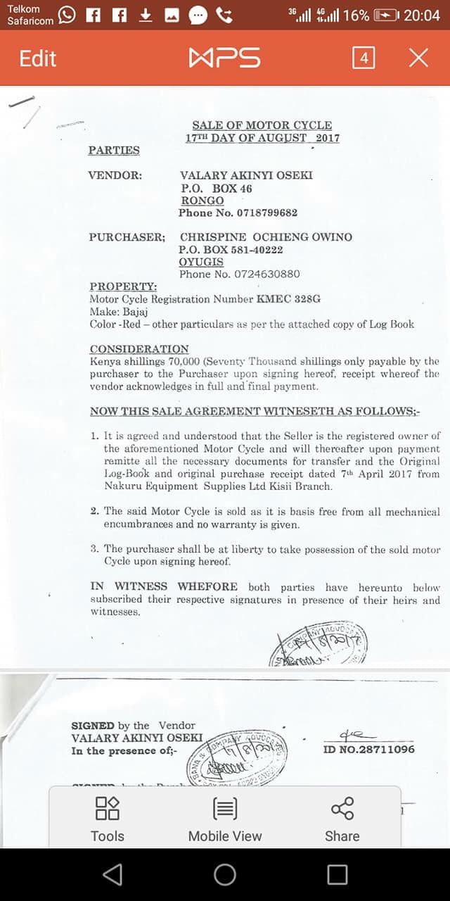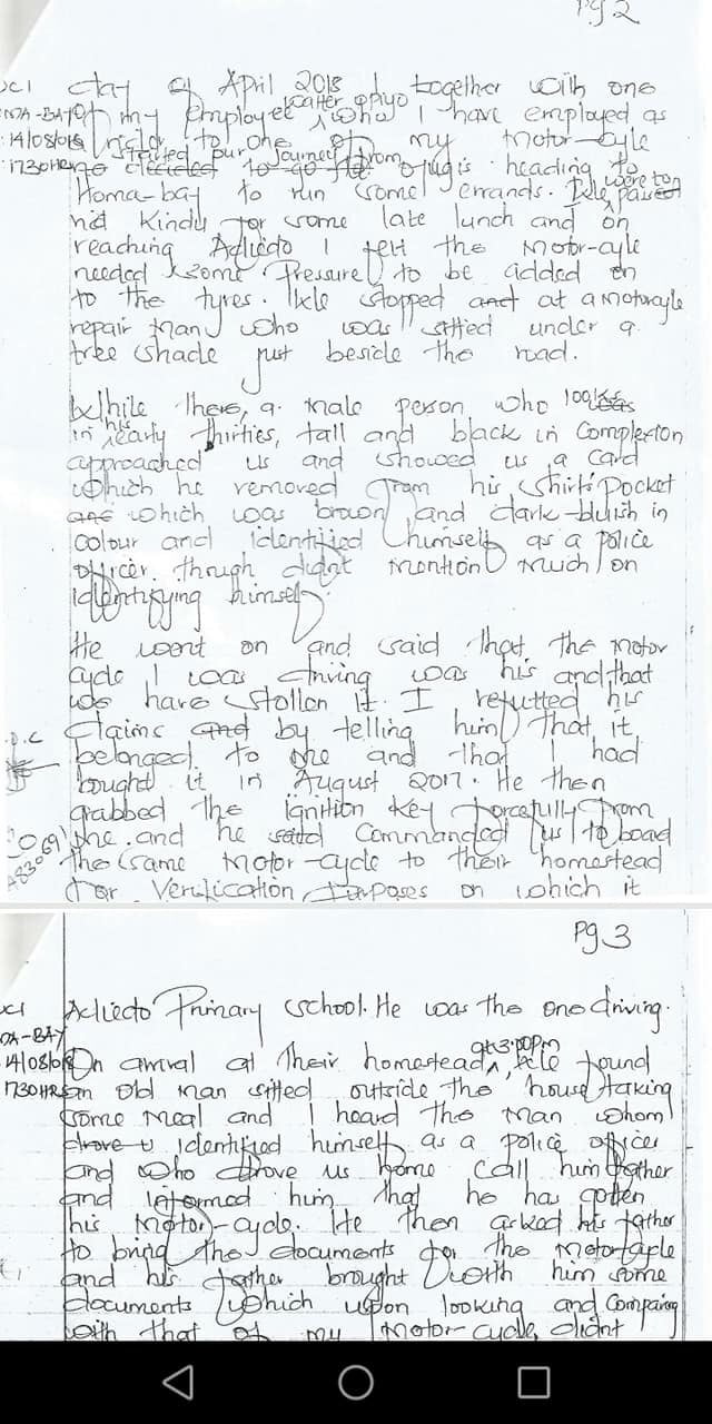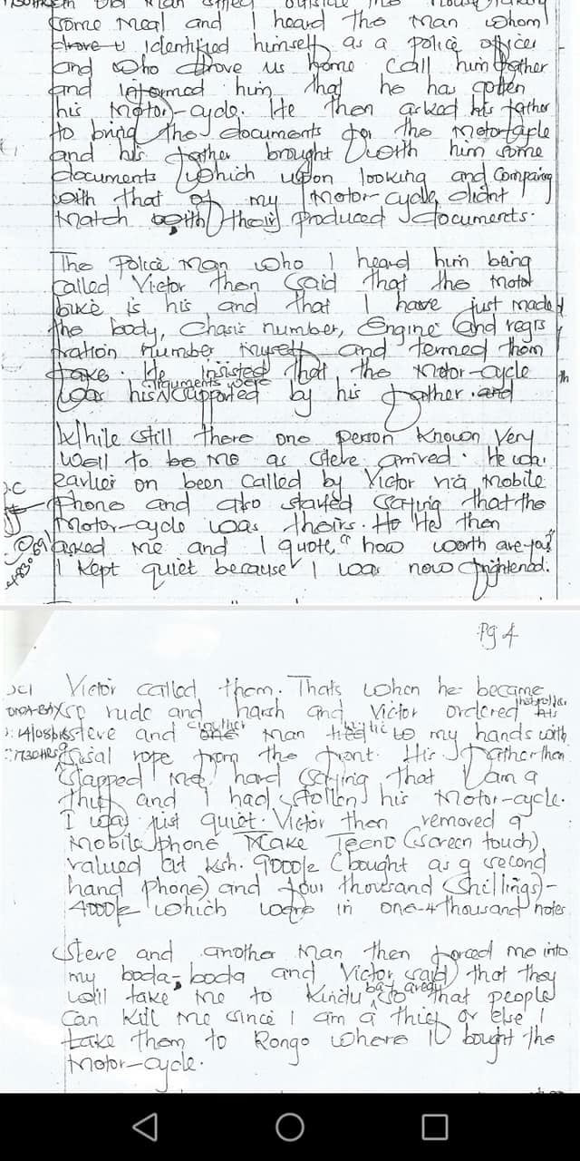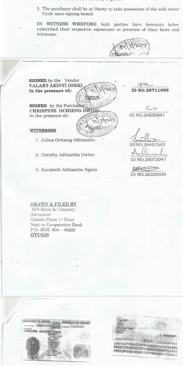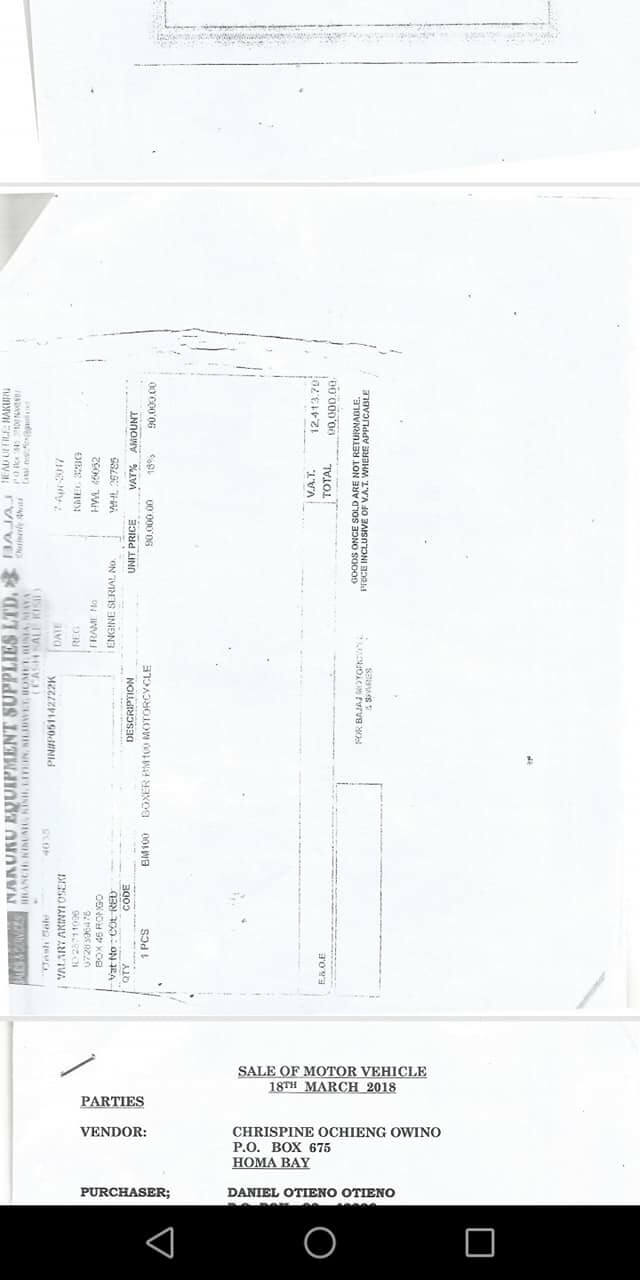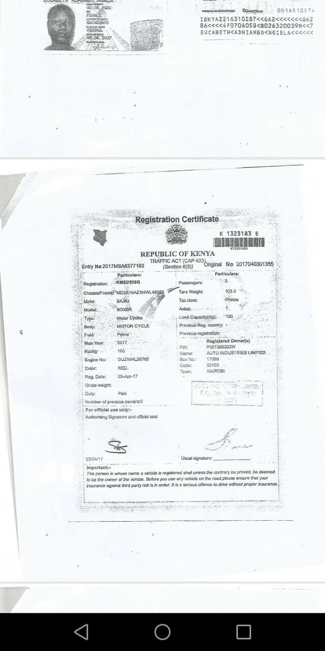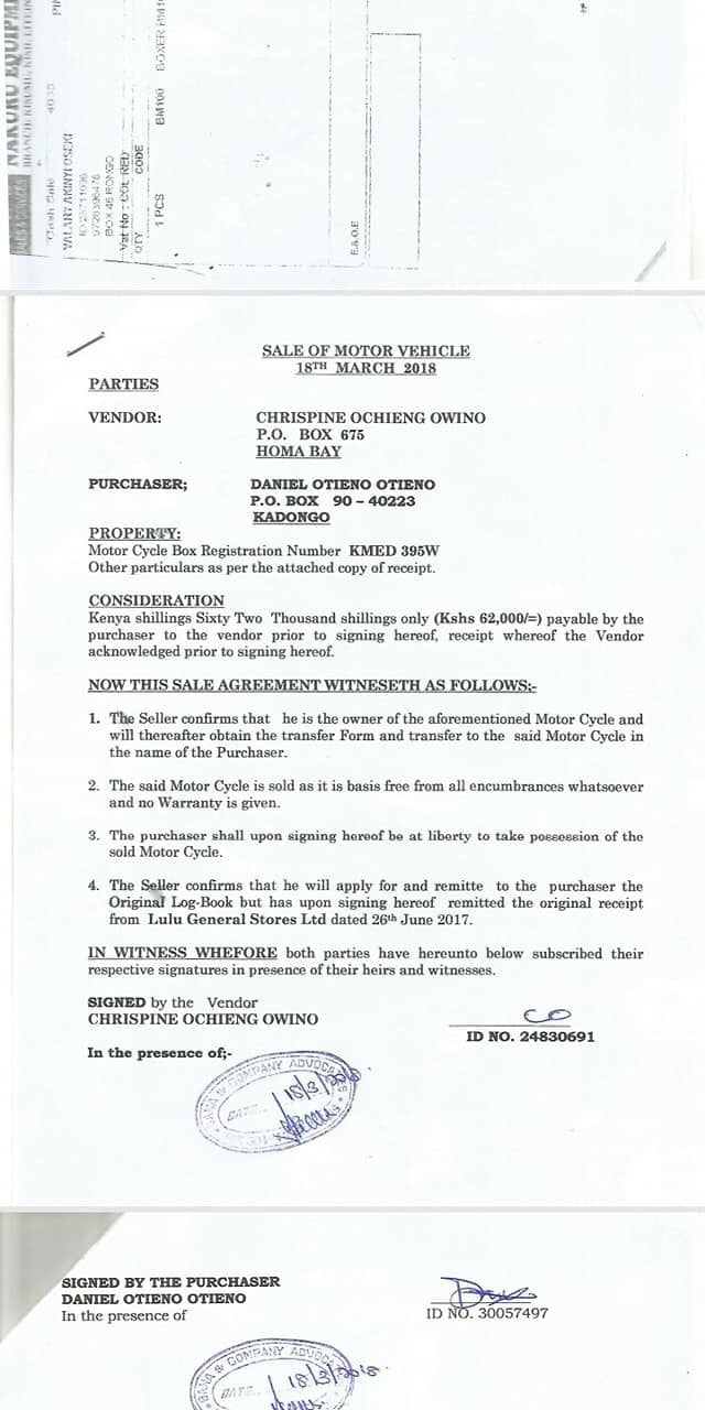 2.Logbook of his motorbike that he was accused to have stolen & Receipt of the motorbike that he sold which the money the accused stole from him( kshs. 84000).