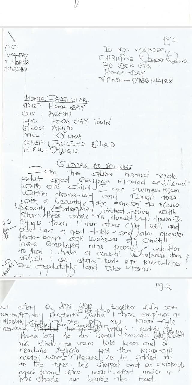 It is coincidental that Chrispine, who had sold one of his motorcycles the very same day still had the 84k, proceeds of the sale with him. What beats logic here is the role of the police. Should they beat and kill suspects or should they apprehend and hand them over to the levers of justice? Of late, there is a rise in incidences of insecurity, murders and robberies within Homabay County and the police seemed to have lost the war on such characters but as it emerges now, they are part and parcel of the criminal gangs.