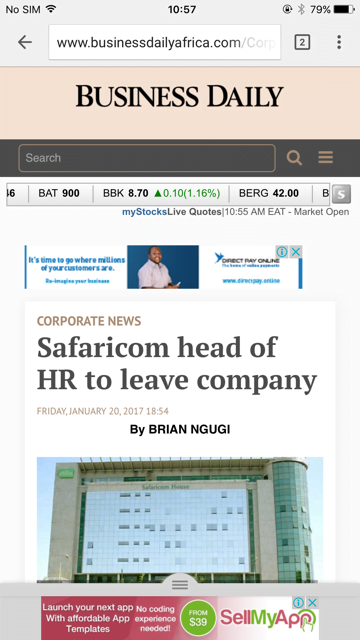 Caption: Corporate Tabloid Business Daily Africa did damage control for Safaricom and Bob Collymore Alleging that Maria Shipiri was '' Resigning for Personal Reasons '' Yet it was because she was behind a Recruitment Hoax that embarrassed the Notorious Telco.