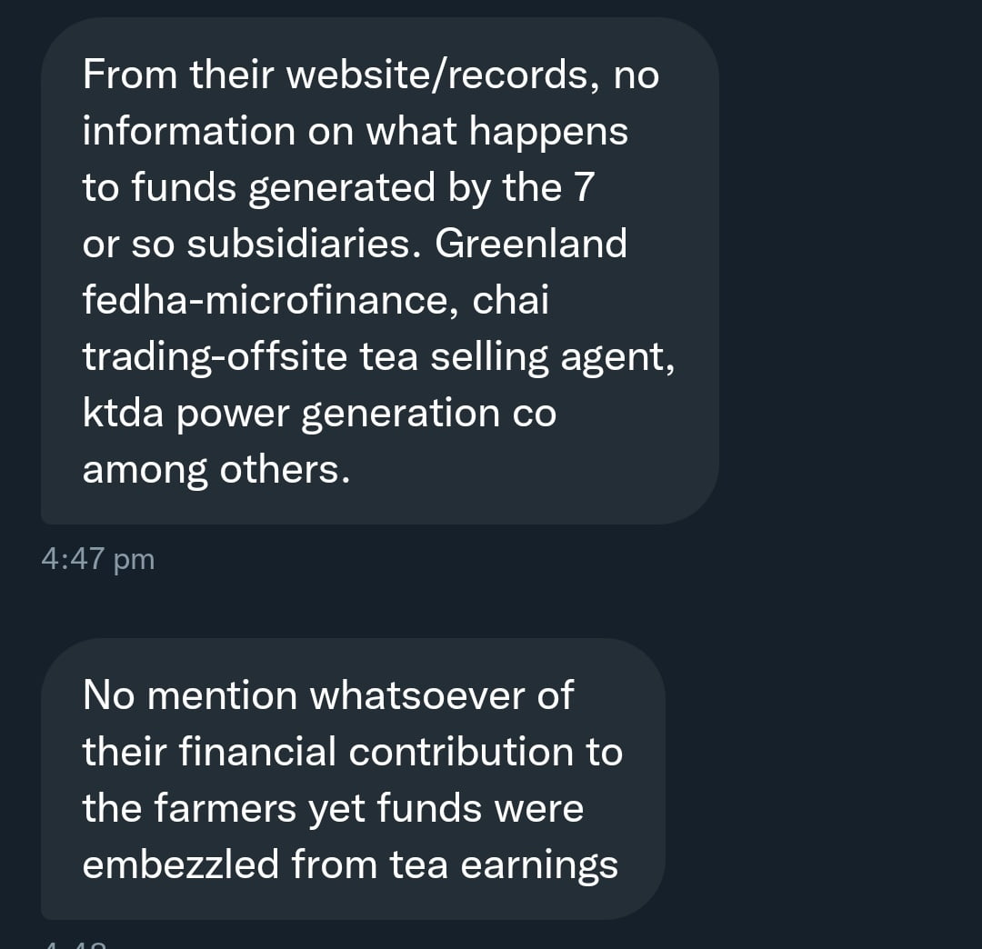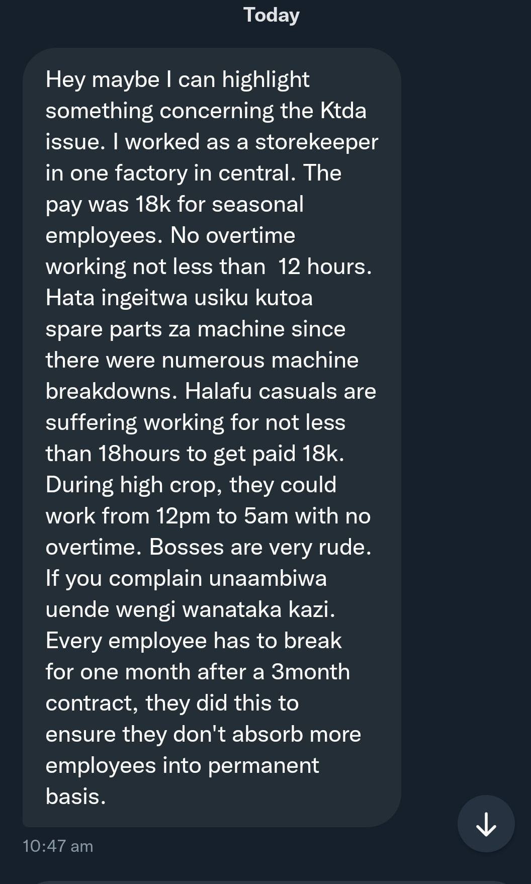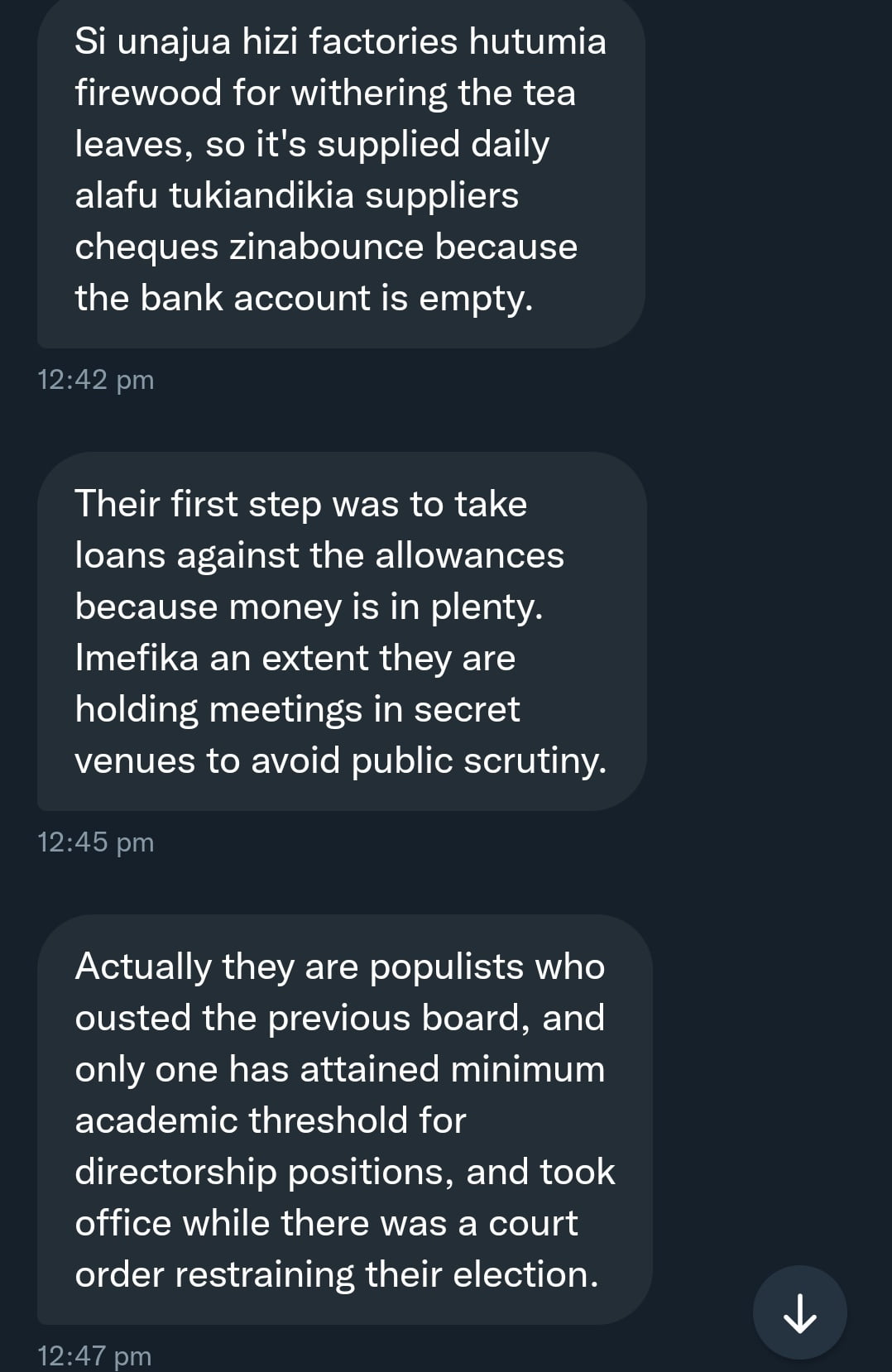 "Do you mind doing a story about the massive looting and thuggery going on in KTDA-managed Tea Factories?