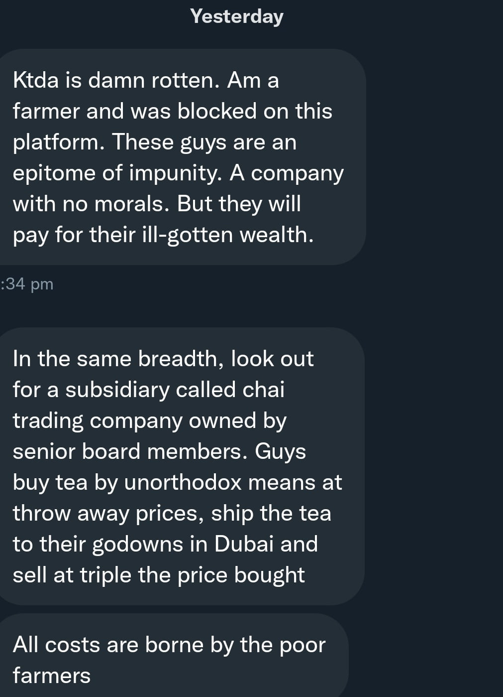 An influential Twitter blogger named "Kimuzi" has unearthed the ugly rot at the Kenya Tea Development Agency (KTDA) where a new regime of rogue directors is causing unseen havoc that threatens to wreak the company.