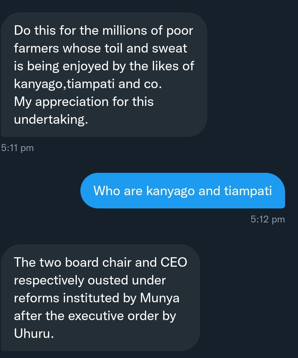The former CS of agriculture is the biggest beneficiary of the reforms in KTDA," Kimuzi shared on Twitter.