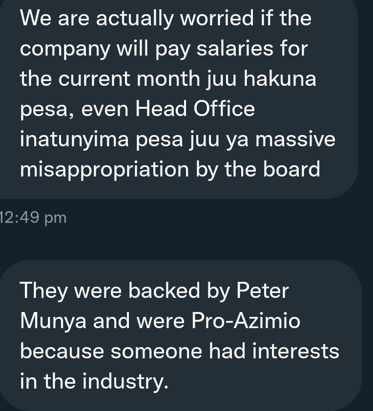 First of all, They have reduced the salaries from Sh43,000 to Sh18,000 in what they say is labour cost reduction whereas each is pocketing more than 300k net of tax per month.