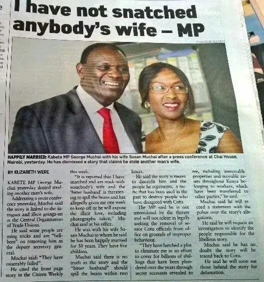 Muchai was also once accused of snatching someones wife ...Claims the denied as shown in the newspaper article that appeared in the daily nation