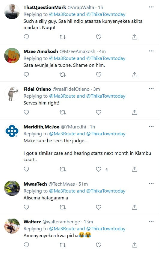 Moments after the clip went viral, news emerged that the perpetrator had finally been arrested and thrown into the cells in one of the police stations in Thika.