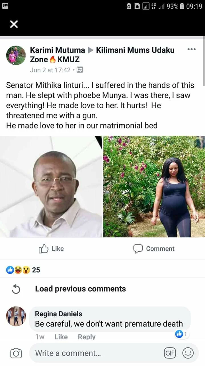 The lady known as Karimi Mutuma also made strong allegations that Linturi slept with former Meru Governor Peter Munya’s wife, Phoebe.