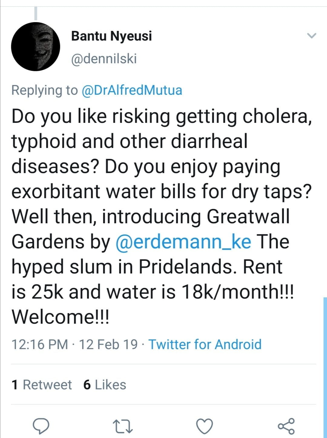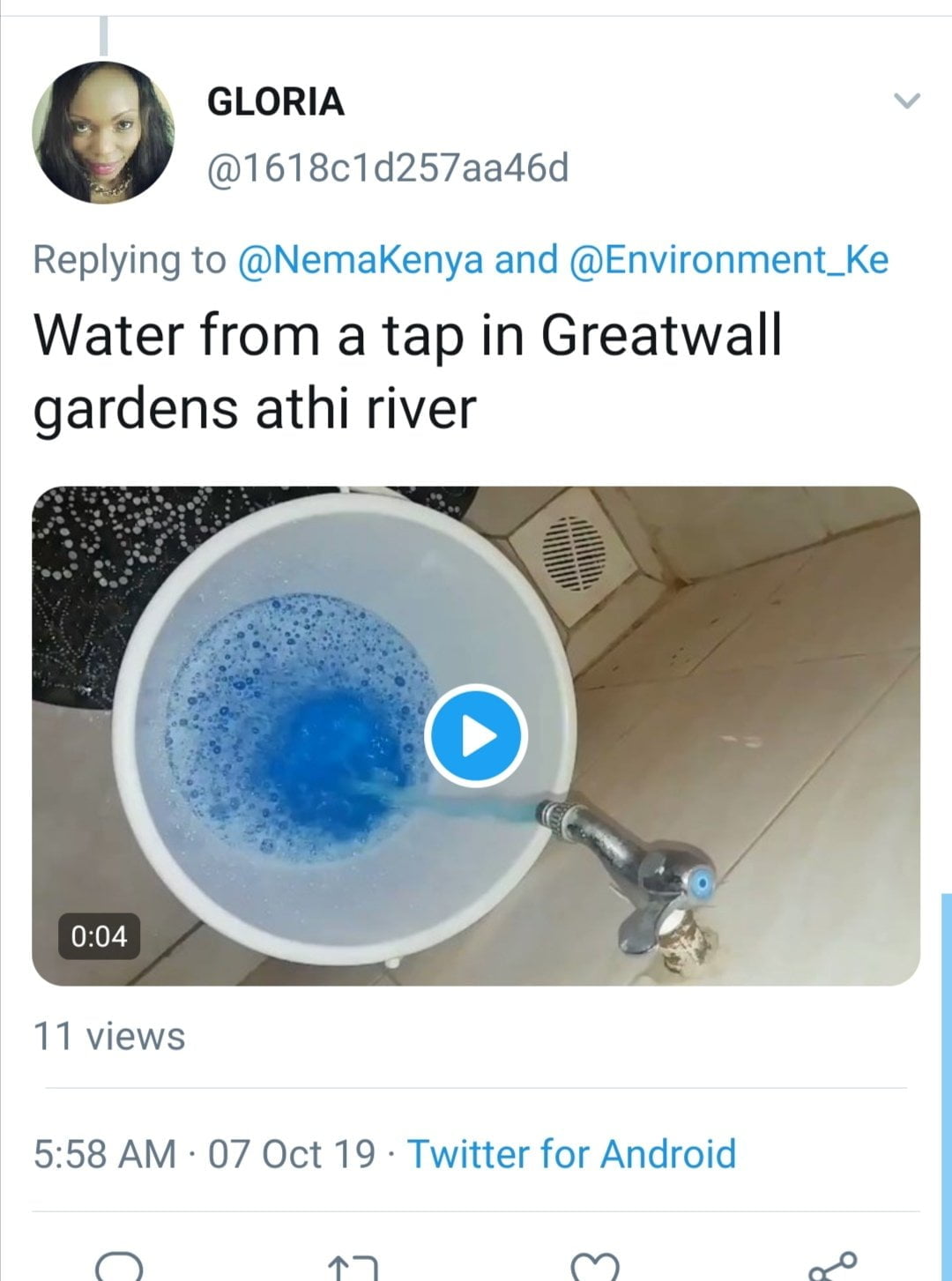 Water from a tap in Greatwall gardens athi river pic.twitter.com/Q7u3LM2MPB
