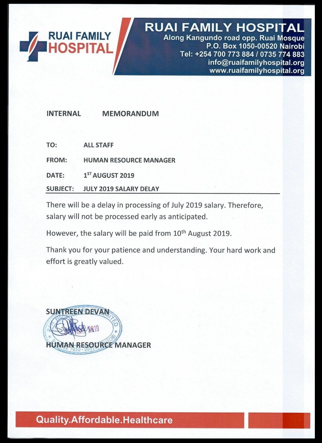 A staff there has sent information that the hospital is struggling and hasn’t paid them for the month of July.