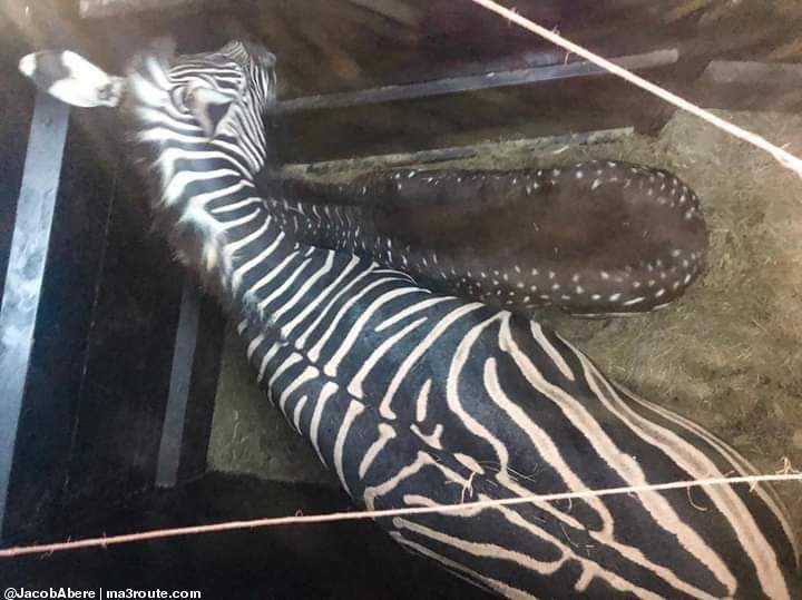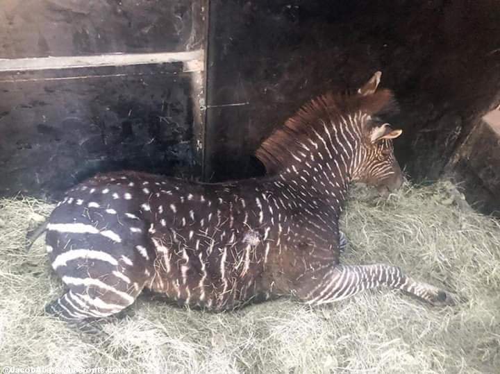 The rare Zebra foal that was born with polka dots instead of stripes, christened Debra by Netizens was spotted photographed at the back of what looks like a lorry on transit.