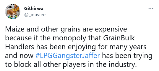Maize and other grains are expensive because of the monopoly that GrainBulk Handlers has been enjoying over the years.