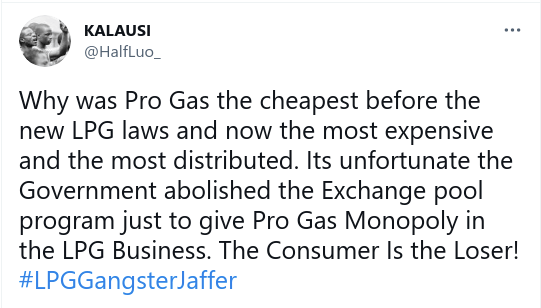 Jaffer, who is a close ally to ODM party leader Raila Odinga is regarded as one of the largest interested parties in the LPG industry and is accused of taking advantage of his political privileges from top state agencies to muscle out his competitors.