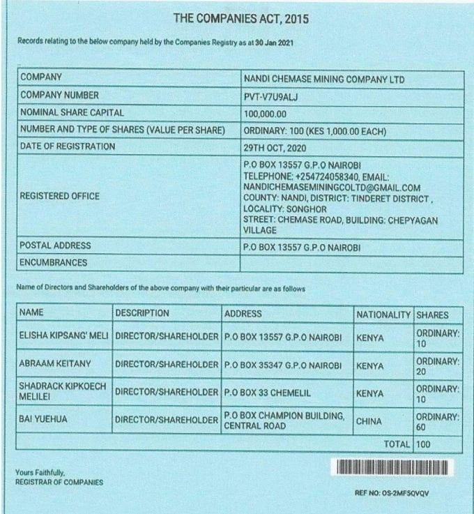 Illegal mining started in the company’s mining area in 2020 with the Korir family/Nandi Chemase invading and trying to take over.