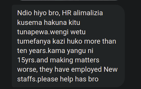 According to our source, the HR manager Grace Kaome at Kartasi made it categorically clear that they would not get a penny.