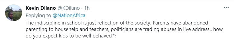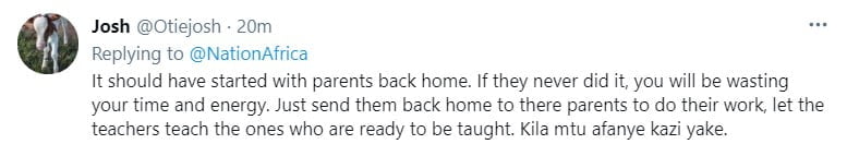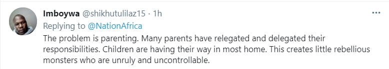Others shared the view that Magoha's approach was a wrong one, holding that instead of having to beat kids in school, the government should instead focus their attention on the current poor state of parenting inspired by the societies we live in today.