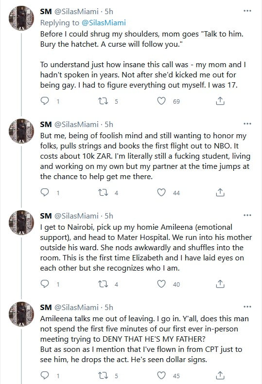 But according to his thread, things got a bit smoother once his father realized that Miami had flown in all the way from Cape Town just to see him and suspected that he had found fortune.