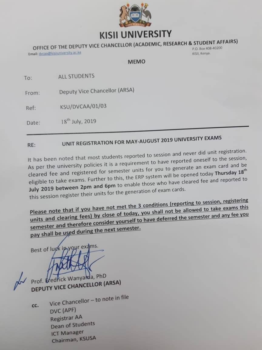 There is a terrible fraud going on at Kisii University. Student portal is being used to lock students out of examinations and are then told to pay Kshs. 17000 each for special exams.