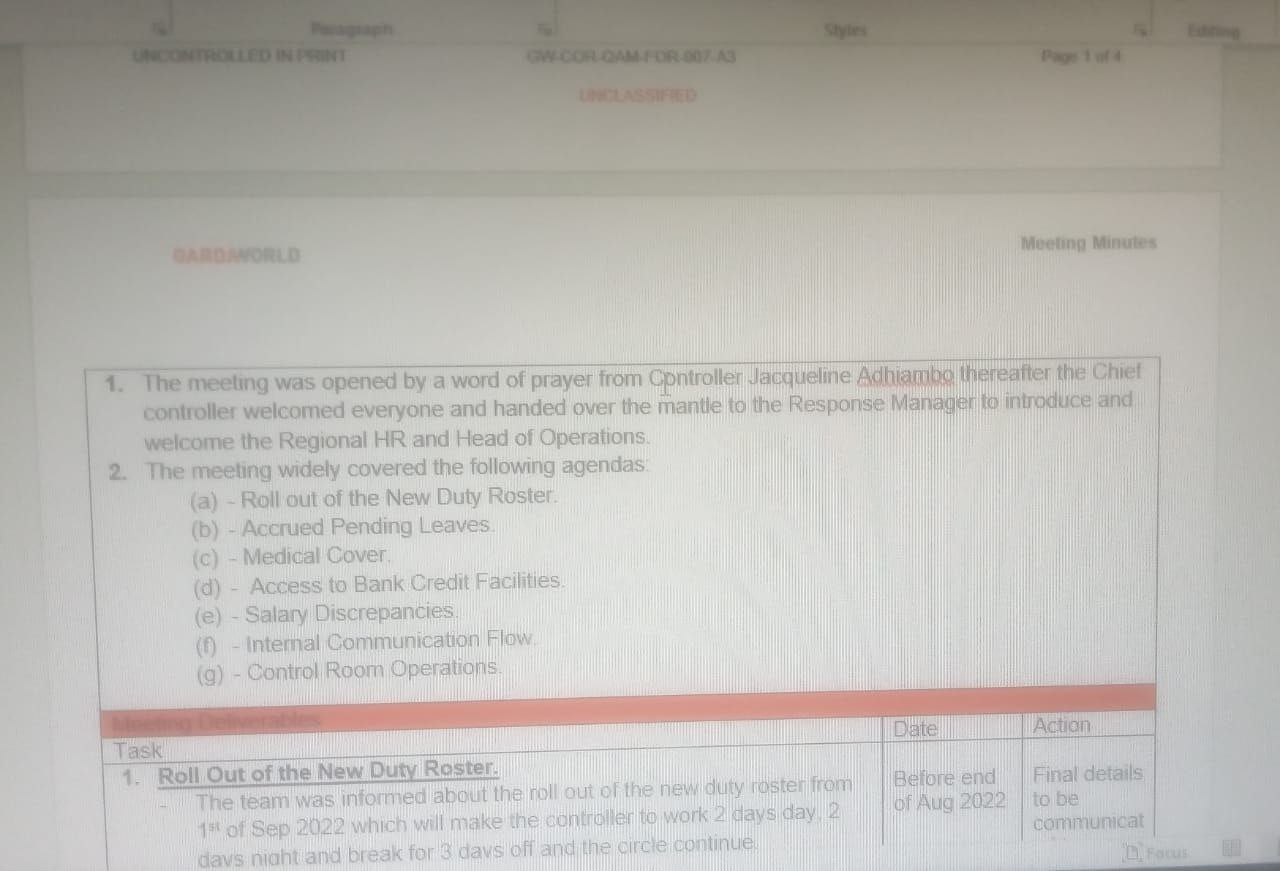 “Hi, Cyprian. I am a controller at KK security, a GardaWorld company, and the treatment being given to us by management is unbearable. We work on a 12-hour, shift basis, and we are expected to work for 48 hours per week as agreed in our contracts.