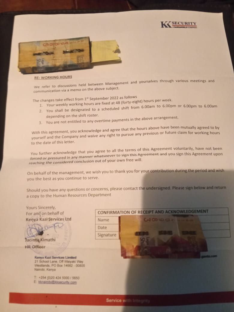 “Holidays are not treated as normal working days while on annual leave, so why treat them as normal working days while on duty? We held several meetings with management to address the issue, but instead, we were given contracts to sign that disputed any past or future overtime claims,” the source adds, attaching the documents shown below.