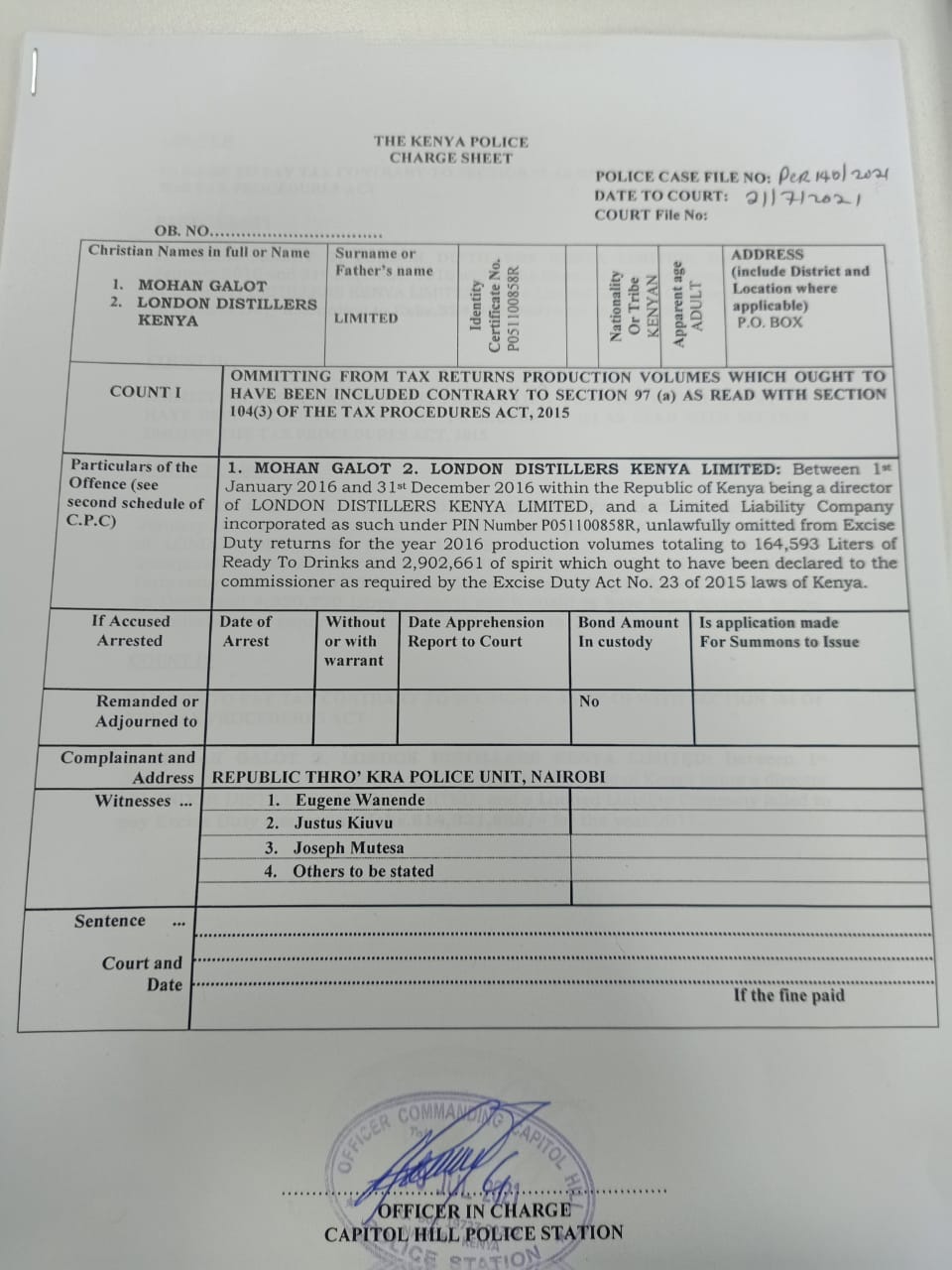 The controversial businessman behind London Distillers Limited is now being accused on Sh2.1 billion tax evasion.