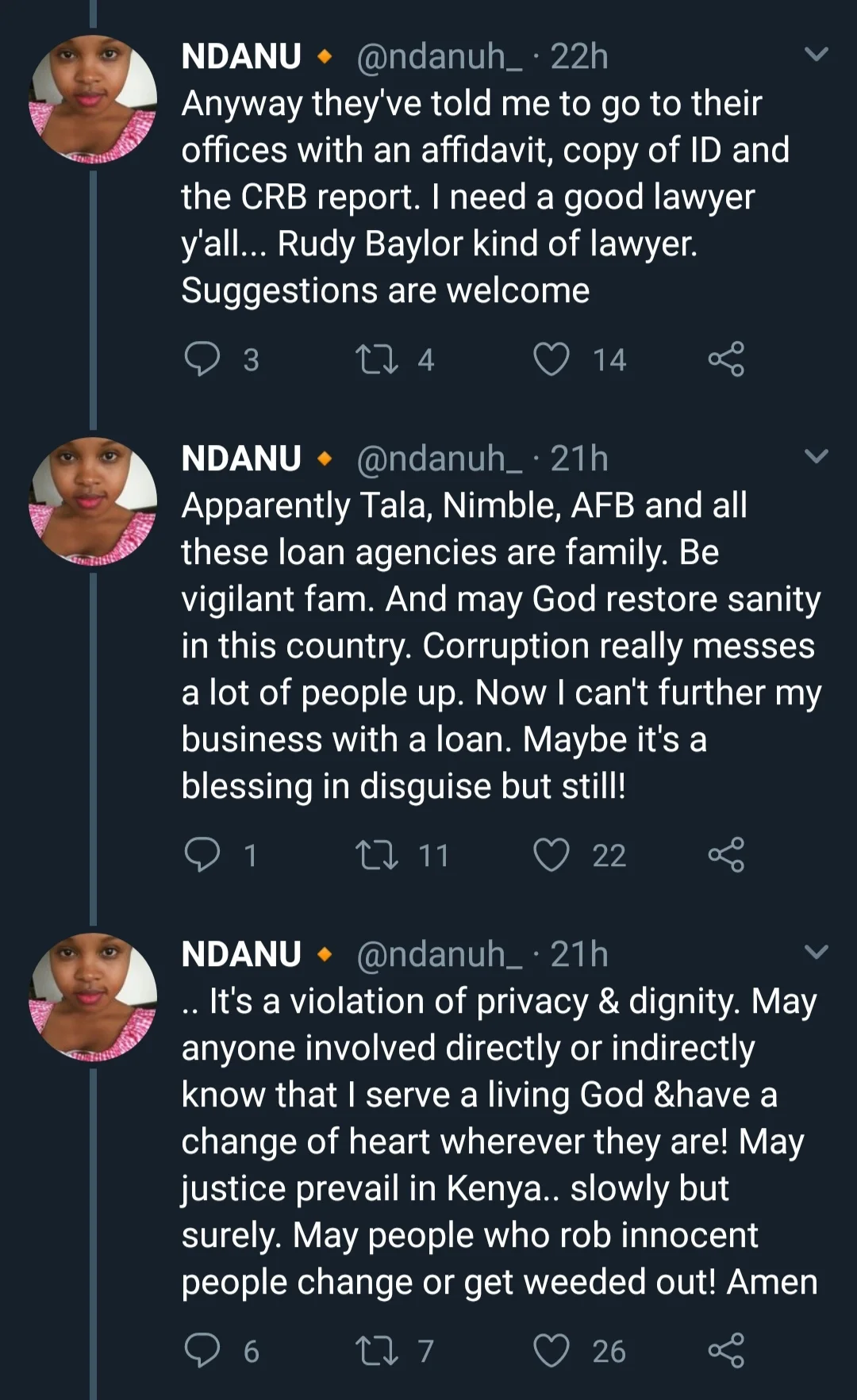 After Ndanu shared her story, Kenyans who have been through similar experiences joined in to tell their stories.