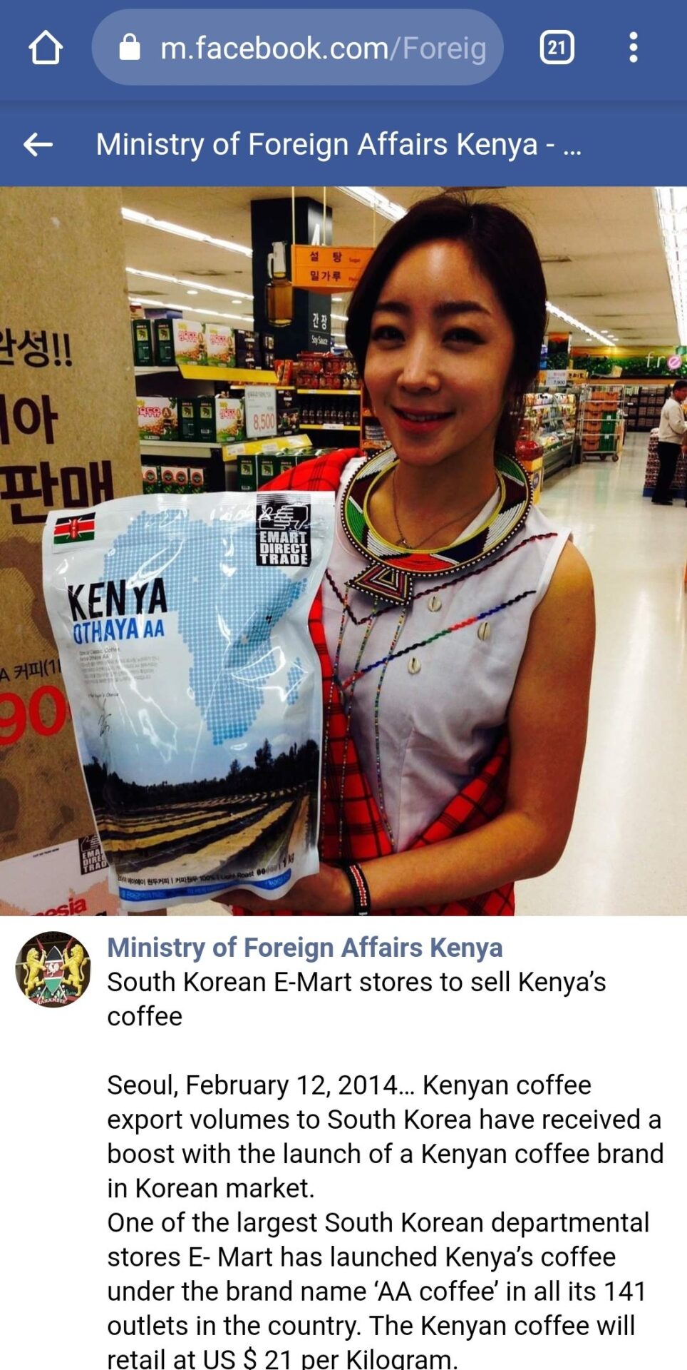It has also been established that the attractive profile photo on the account was downloaded from the Ministry of Foreign Affairs Facebook Page during the Kenya-Seoul Coffee partnership in 2014.