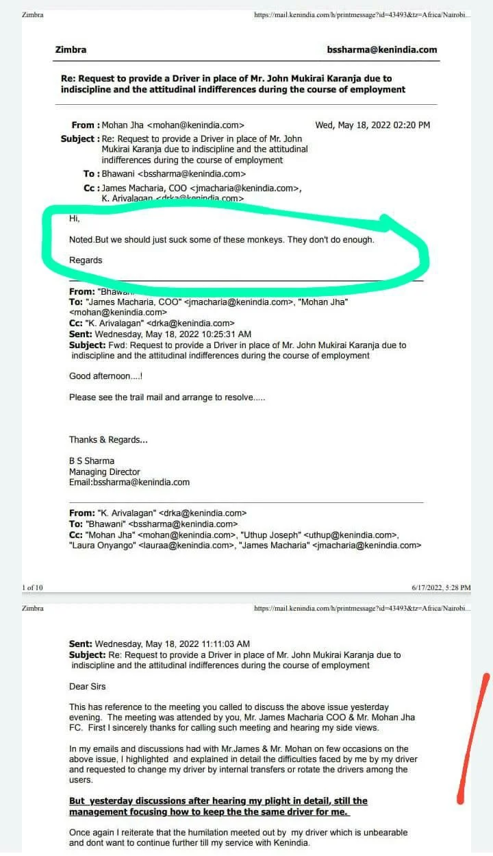 In part of his response, Mr Mohan Jha referred to Kenindia employees as “monkeys”.