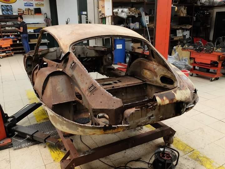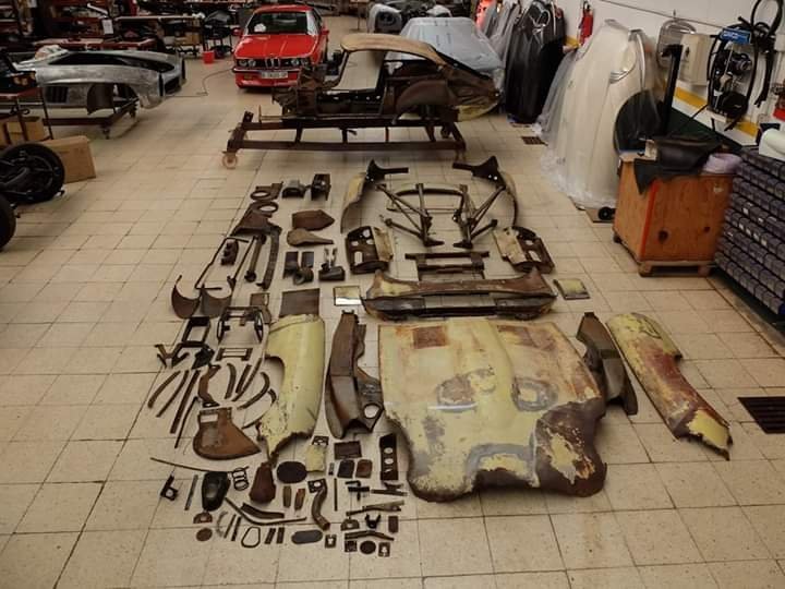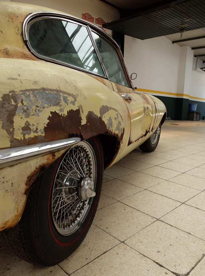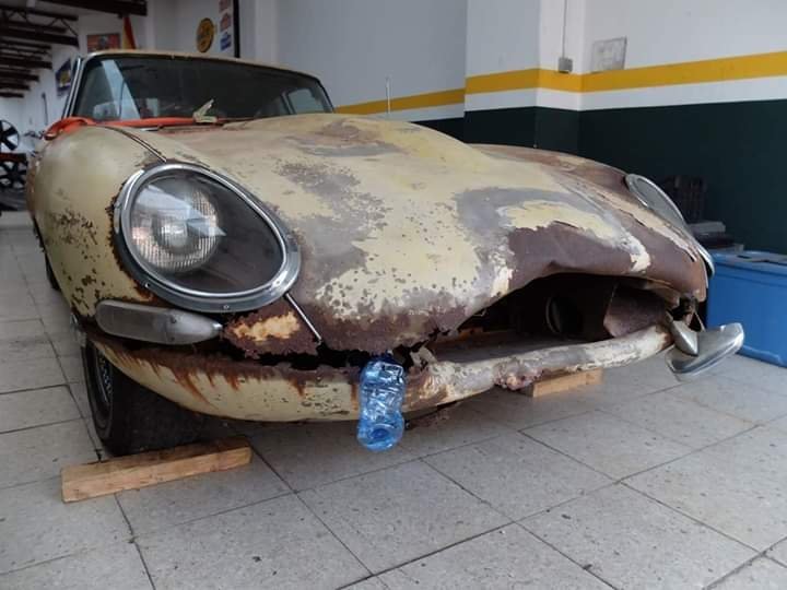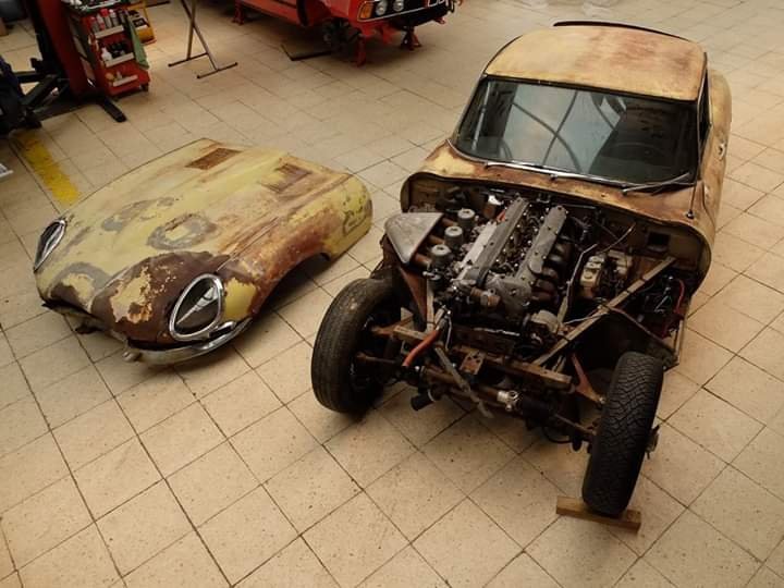 Here below, photos show the transformation of a Jaguar E-Type that was rotting away.