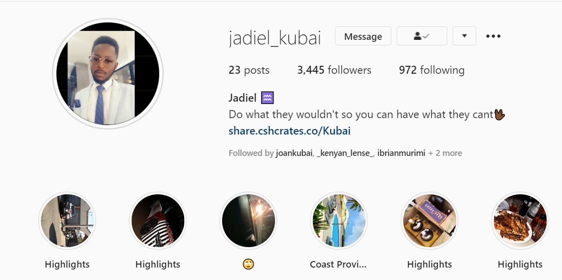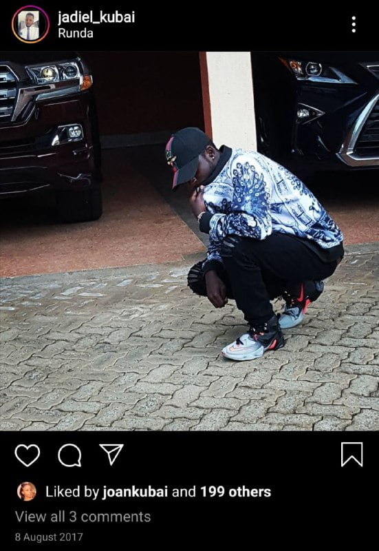 A quick look into his social media profiles makes it clear to anyone that Jadiel Kubai, just like his sister Joan, equally loves to proudly showcase the massive wealth his father has accumulated.