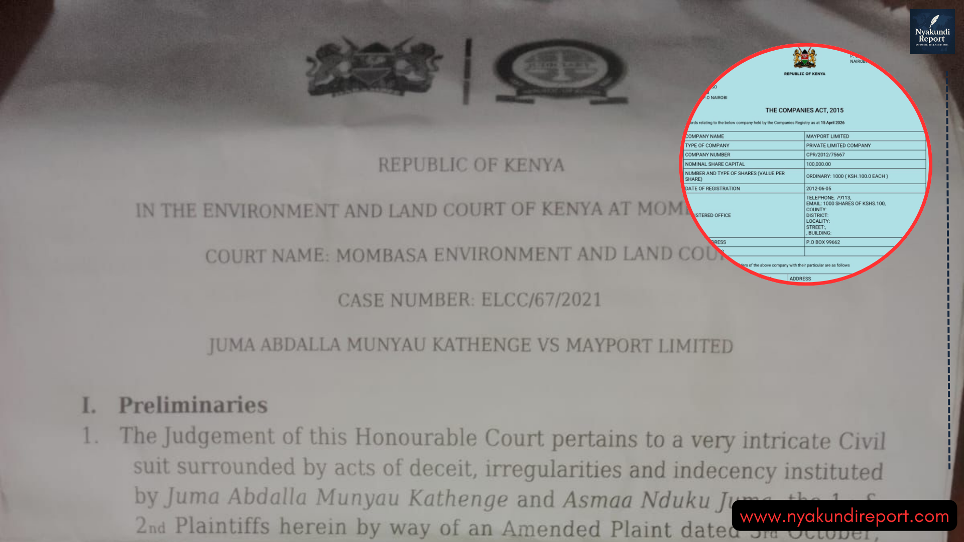After more than ten adjournments, former Mombasa Environment and Lands Judge Titus Naikuni, now based in Kwale, finally delivered his verdict. He ruled that Mayport Company Limited is the lawful and registered proprietor of the disputed parcel—land subdivision Number 6234, original Number 5220/4, Section I Mainland North, CR No. 20722.