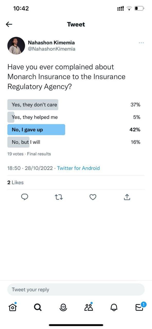 At one point, the Insurance Regulatory Authority (IRA), which has proved to be toothless, responded to a disgruntled social media user, saying they would investigate malpractices.