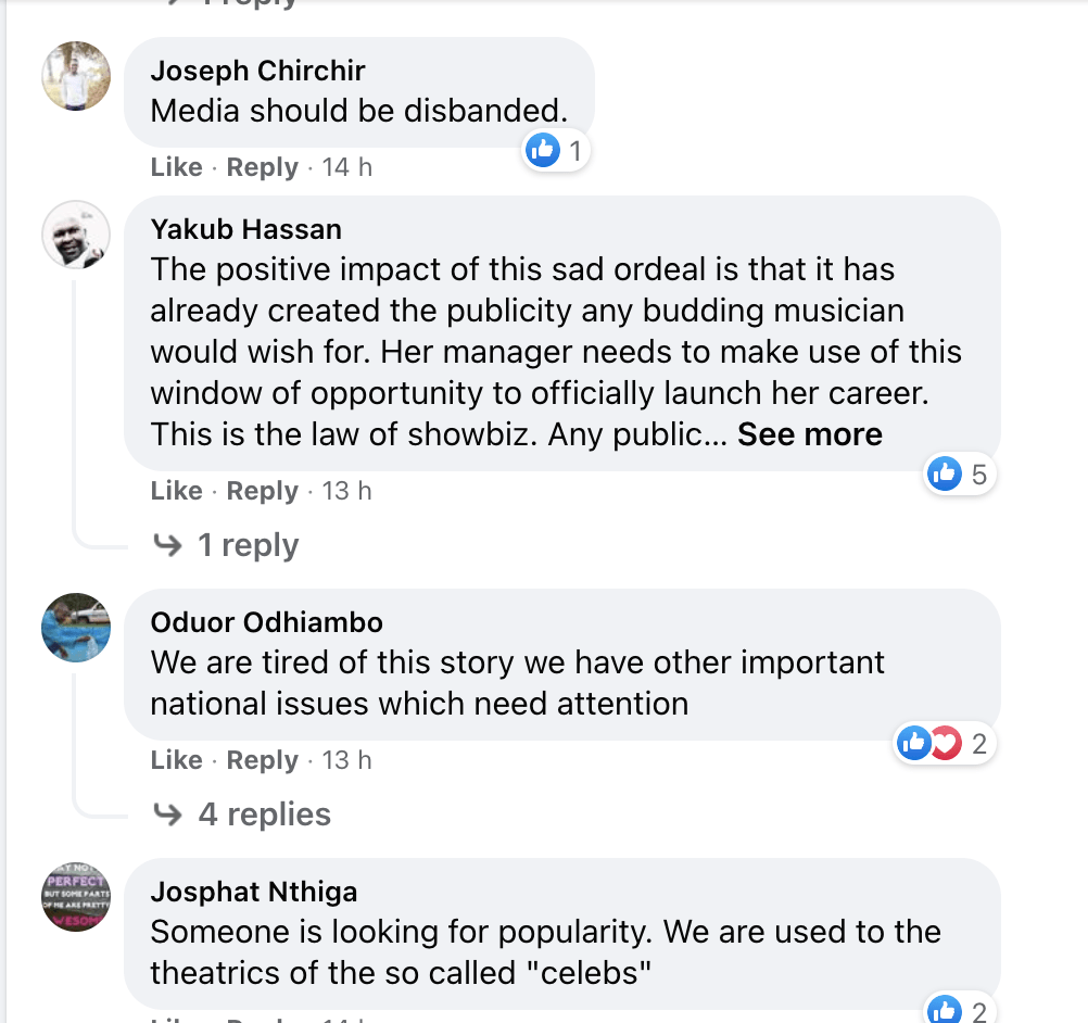 Of all the comments shared on social media, many Kenyans are saying the story doesn't add up and blaming the media for doing a shoddy story aimed at chasing clout.