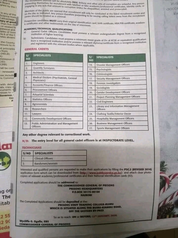 We currently have more than 1000 staff with degree and master’s level in different fields. Most of these staff are still in lower ranks when they are actually supposed to be promoted to the rank of Inspector and above. Without considering these already in service with skills and educational qualifications, KENYA PRISON IS RECRUITING NEW MEMBERS WITH SAME EDUCATIONAL QUALIFICATIONS BUT LESS SKILLS TO HIGHER RANKS.
