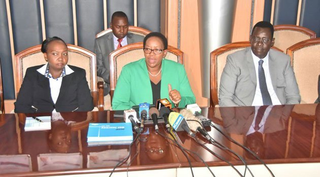 Health Cabinet Secretary Sicily Kariuki in April 2018 unveiled the new NHIF Board Chairperson Ms Hannah Muriithi (left) and Mudzo Nzili (Vice Chairperson)