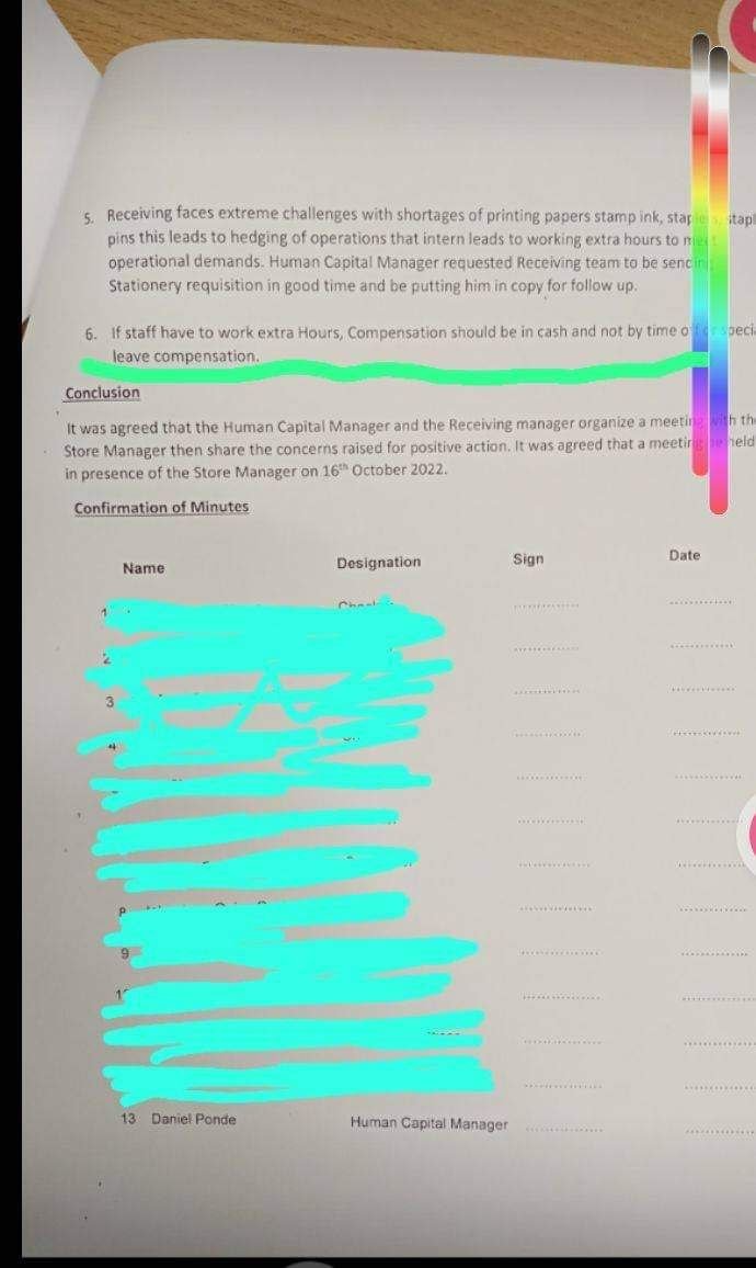 The auditor found the complaints to be true and held a meeting with the Human Capital representative Daniel Ponde and management to discuss the issue.