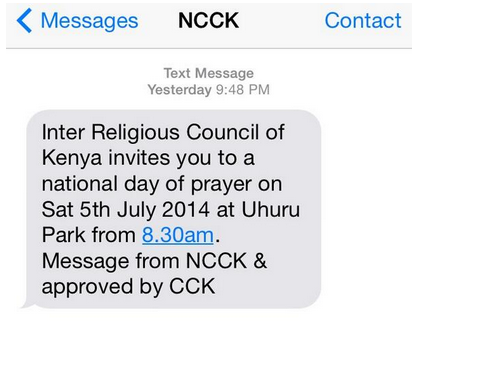 In July Last year, Many Kenyans were spammed with messages that allegedly came from the NCCK Idiots. Here is the message .
