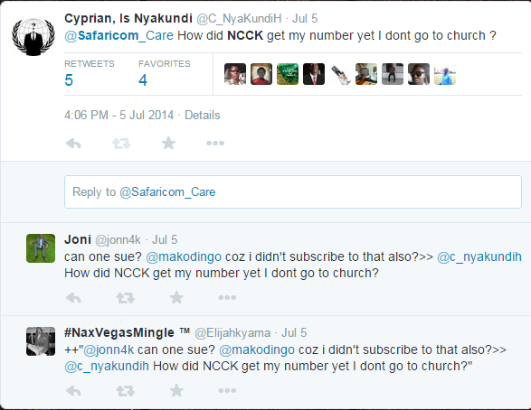 The reality is that Safaricom had given NCCK our phone numbers and the fellas decided to spam us with their text messages. Many Kenyans complained about being spammed with these messages. But you know what ? Kenyans just complain for a few minutes then accept and move on.