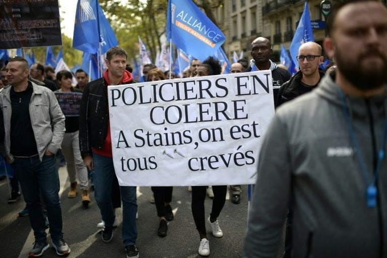 The action marked the first mass police strike in France since 2001.