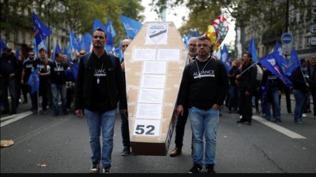 Police unions have warned since the yellow vest violence broke out, some 52 officers have committed suicide since January.