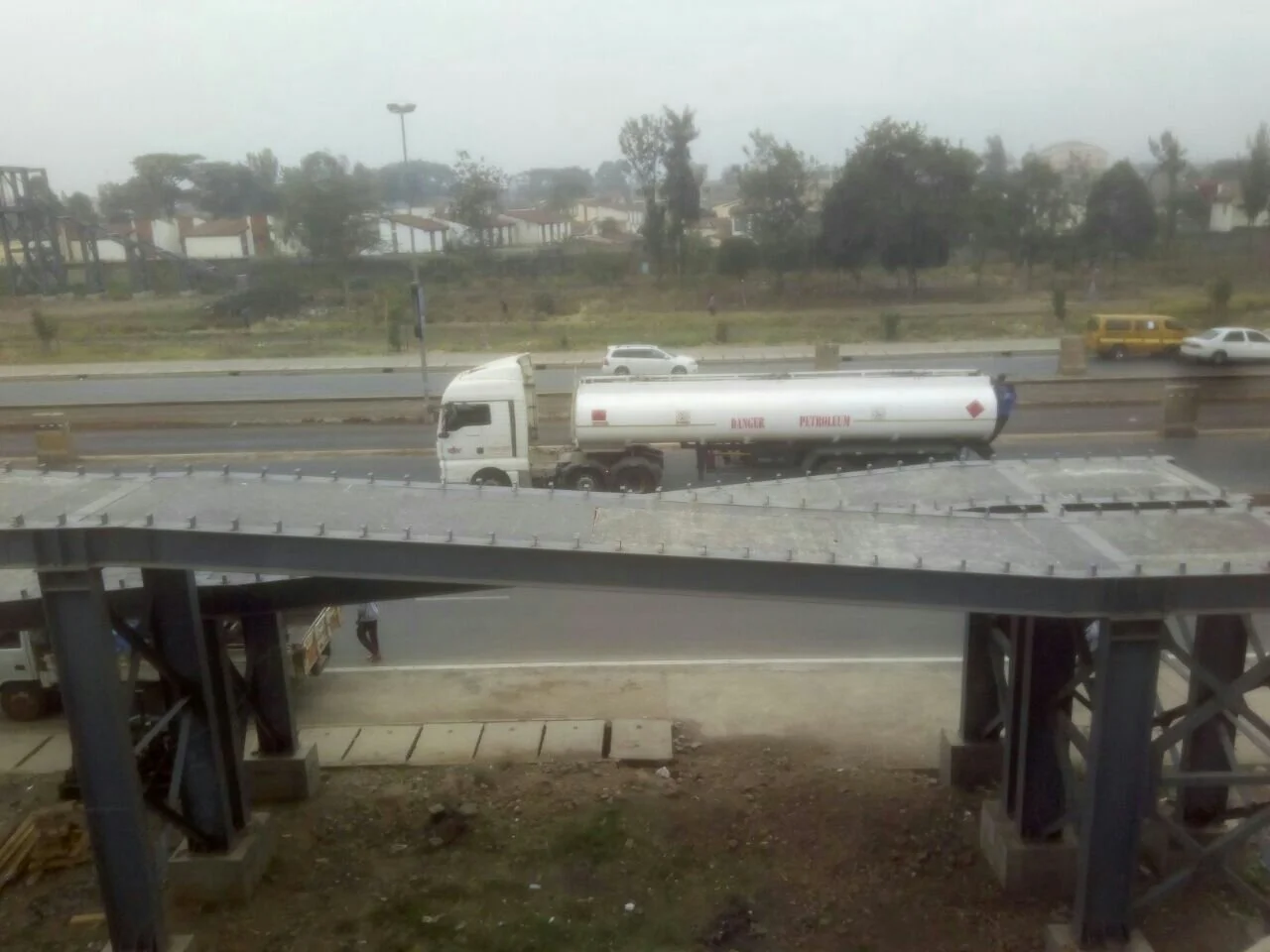 Though the footbridge is not fully complete, as the covers and mesh to protect pedestrian from elements and from falling over respectively, are yet to be put in place.
