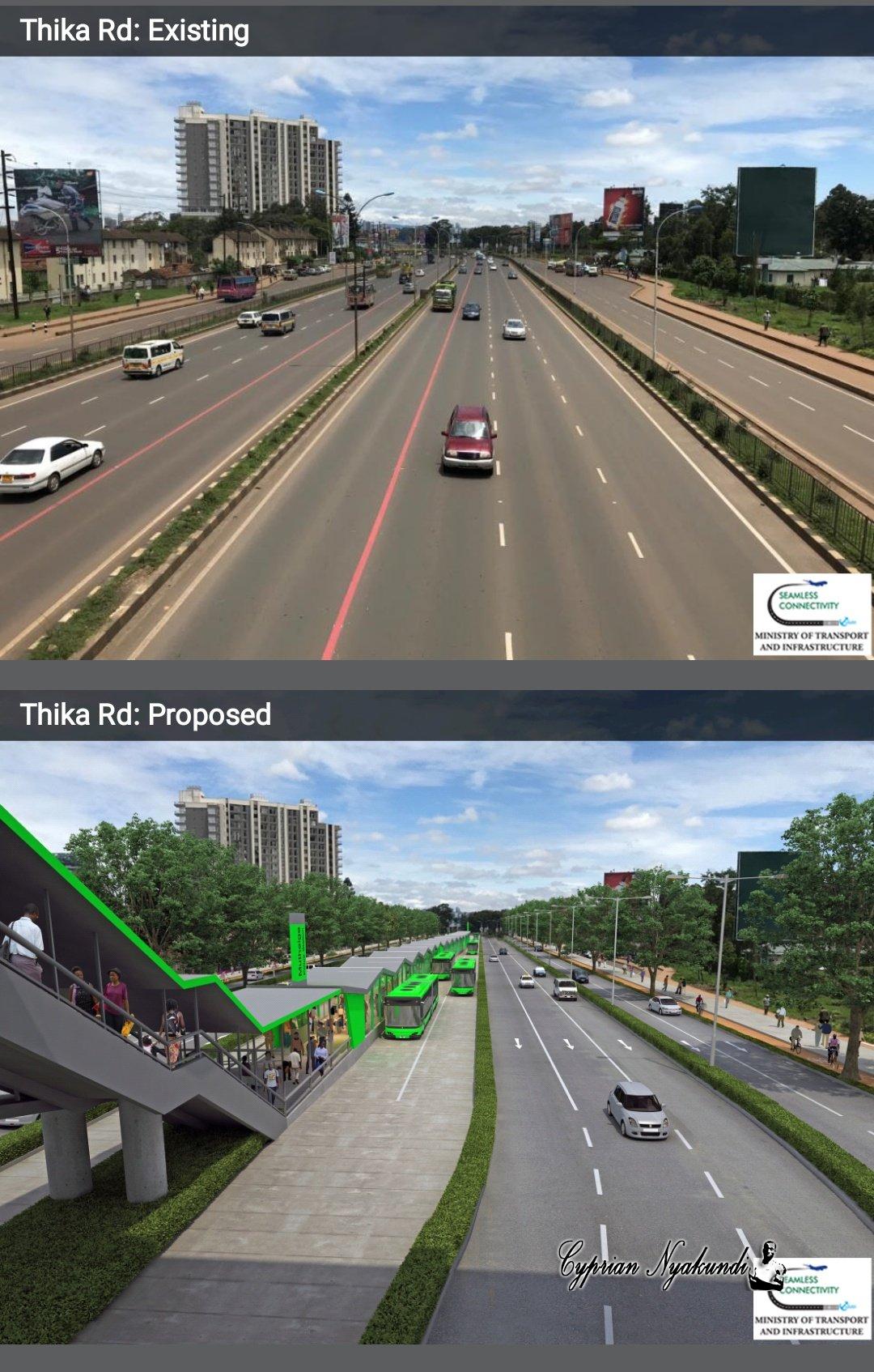 The photos show the potential transformation of the KENCOM stage and the Thika highway in order to accomodate the new buses.