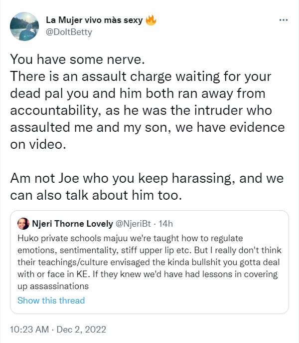 The drama began when Njeri Thorne, a prominent political consultant, confronted Betty Waitherero, a popular feminist on the platform, claiming she held some answers concerning a purported assault incident against the guy, whom she explained was born in Kenya but brought up in England.
