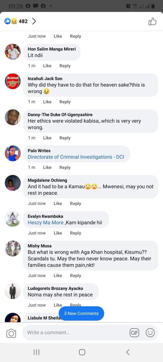 The puzzling death of a nurse based at the Aga Khan hospital in Kisumu has sparked divided opinions on social media.