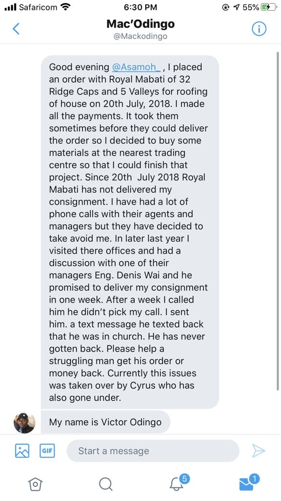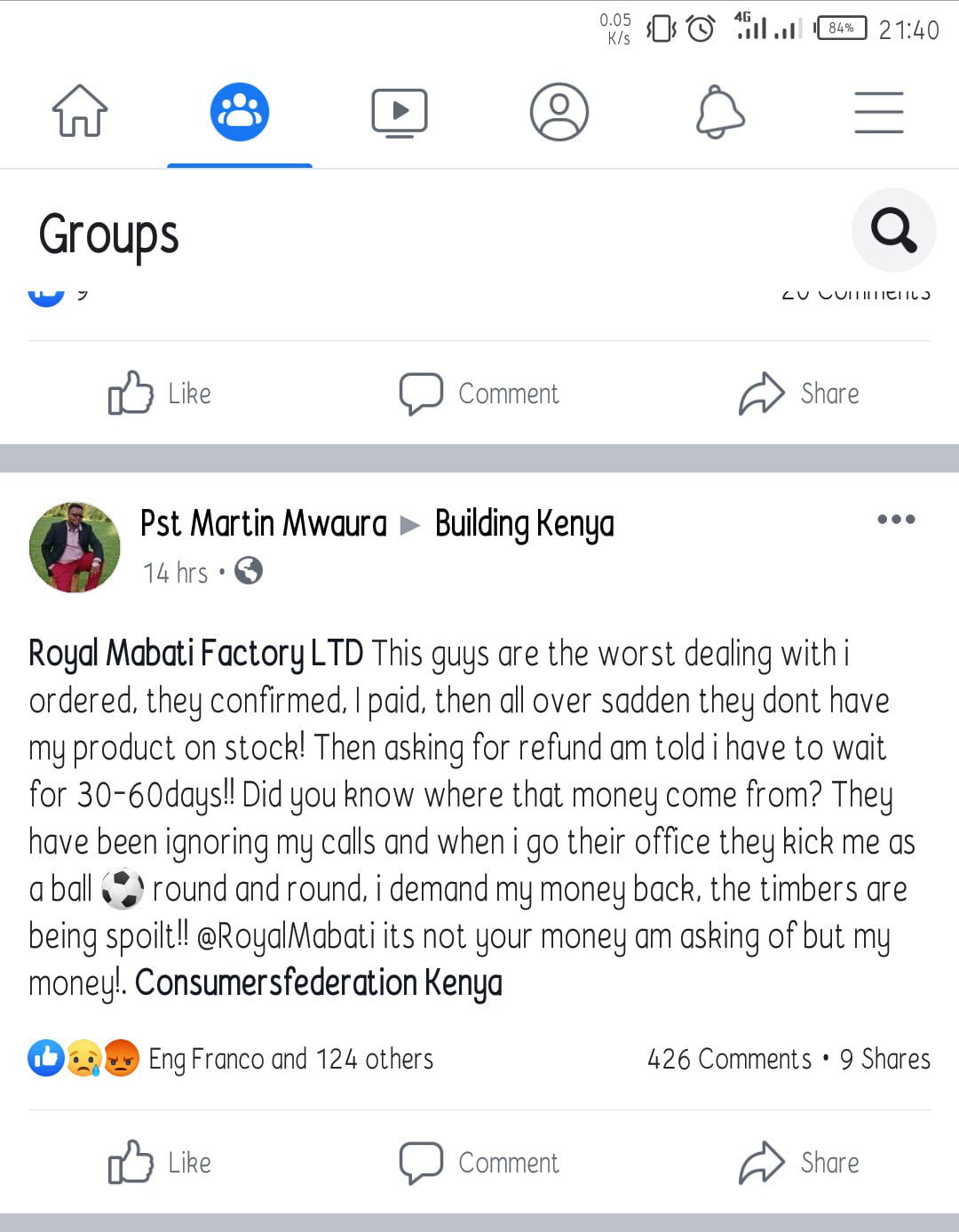 The complaints are many such that if you search the words “royal mabati’, you wouldn’t miss them.
