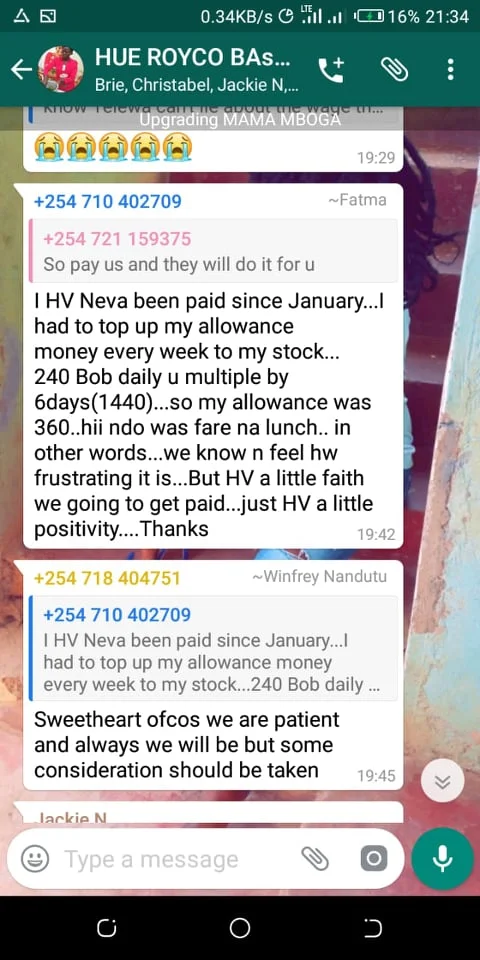 This was a field job which involved alot; kuzunguka sokoni the whole day selling Royco cubes to Mama Mbogas for four months without pay, where do you expect us to get money and pay rent?