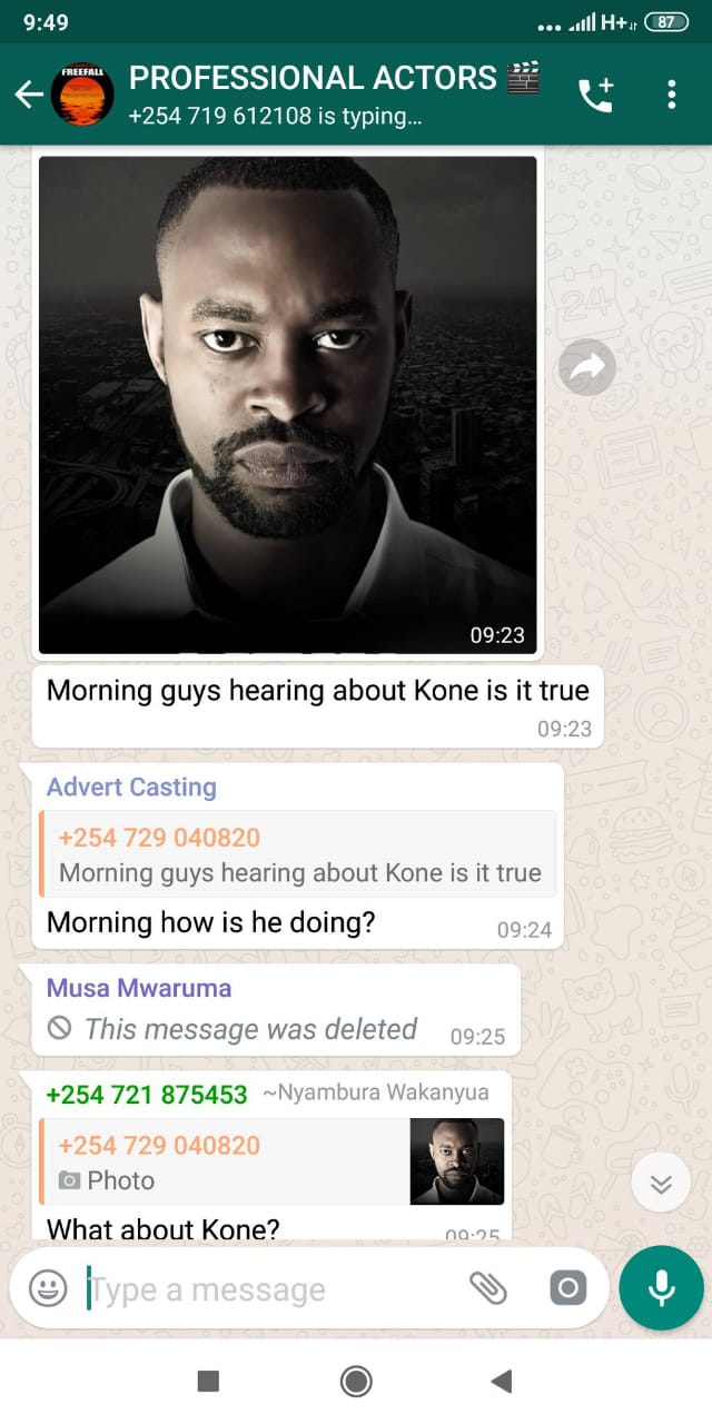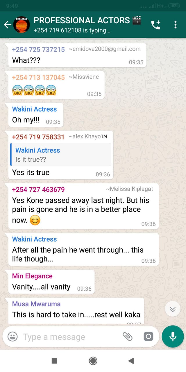 Here are screenshots of how Ms Kiplagat broke the news of his death on a WhatsApp group.