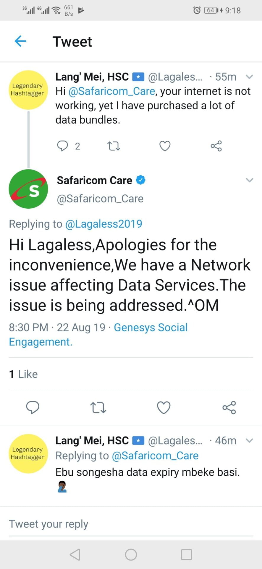 This afternoon users in the shitty leading telco are not able to use their data bundles due to a system glitch. I have also noticed that calls are not going through; for example, when one calls a particular nunber they are told 'the number is out of service', calls are going through after one repeats the call. Safari