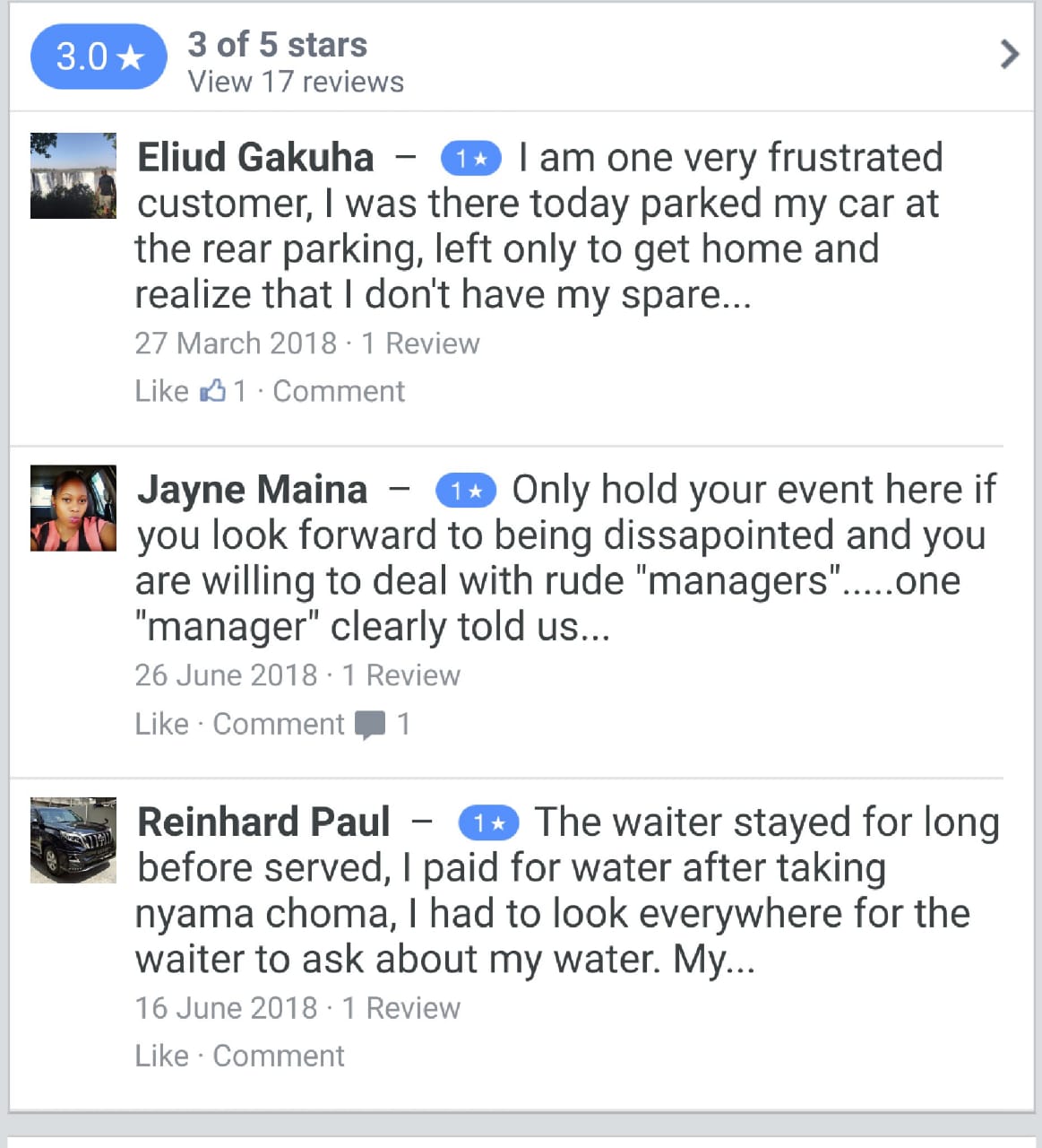 A look at reviews on their Facebook page shows a lot of anger and frustration from patrons ranging from theft to poor service. It seems like the joint's owner arranges with thieves to break into vehicles parked at the vicinity.