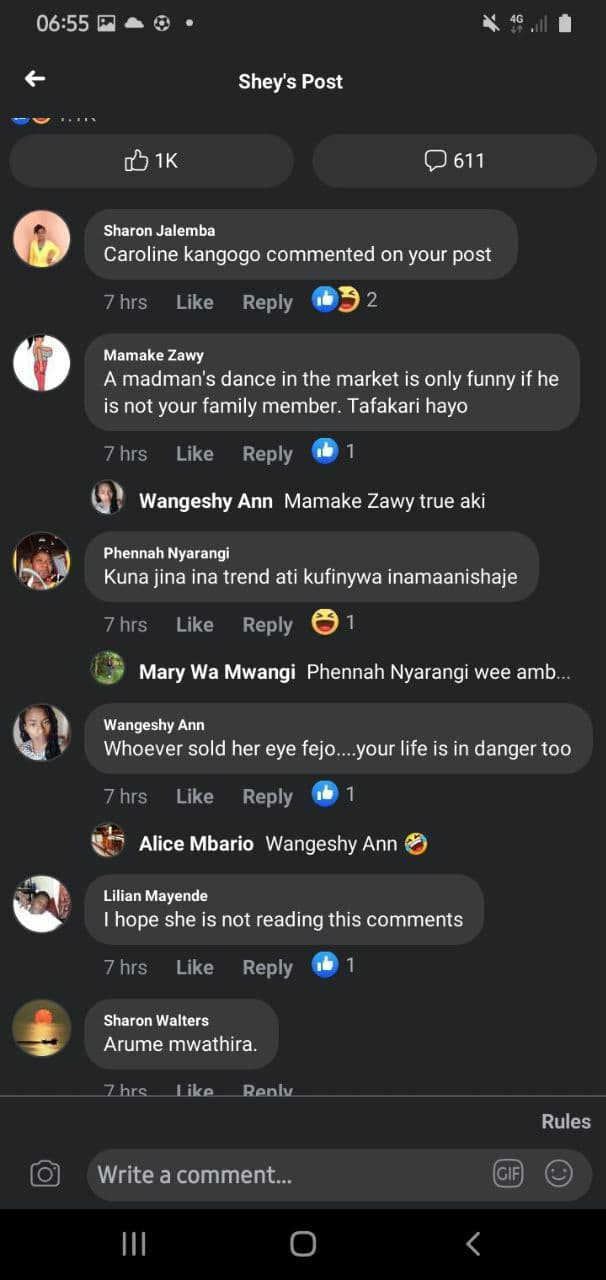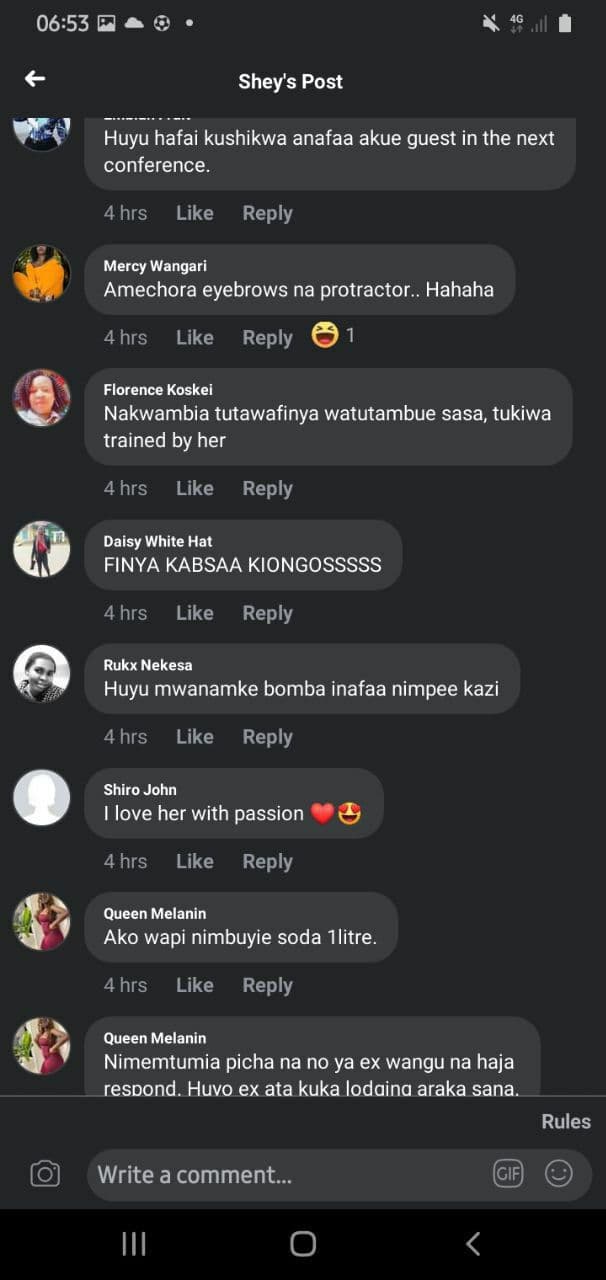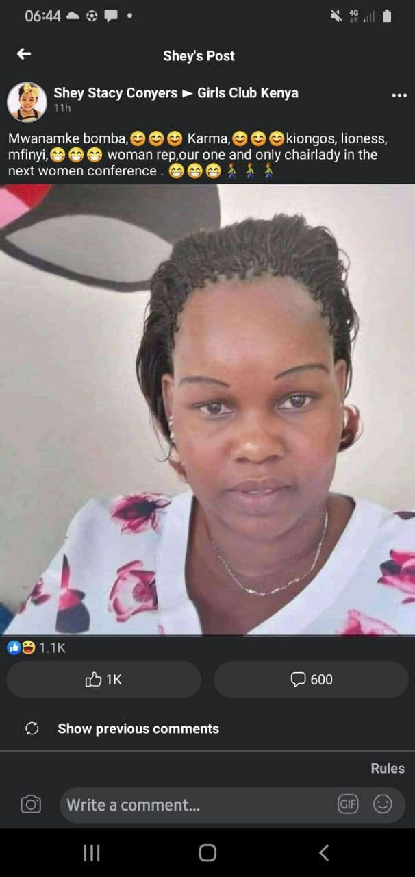 In one such post shared in one of Kenya’s most-followed Facebook groups, a Kenyan lady hiding under the pseudo name “Shay Stacy Conyers” wrote a viral paragraph lauding the female officer for her crimes.