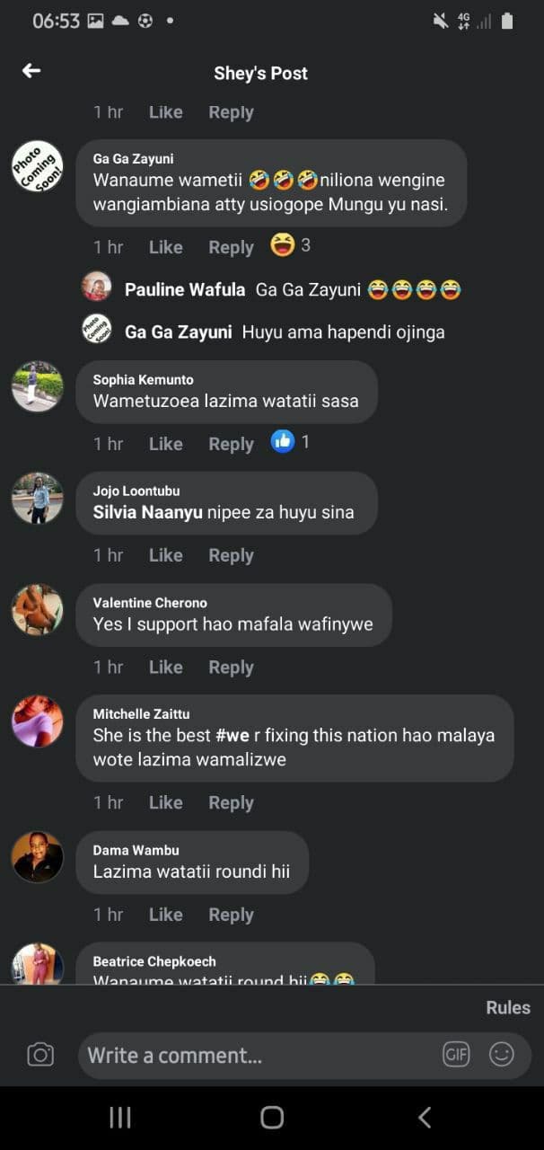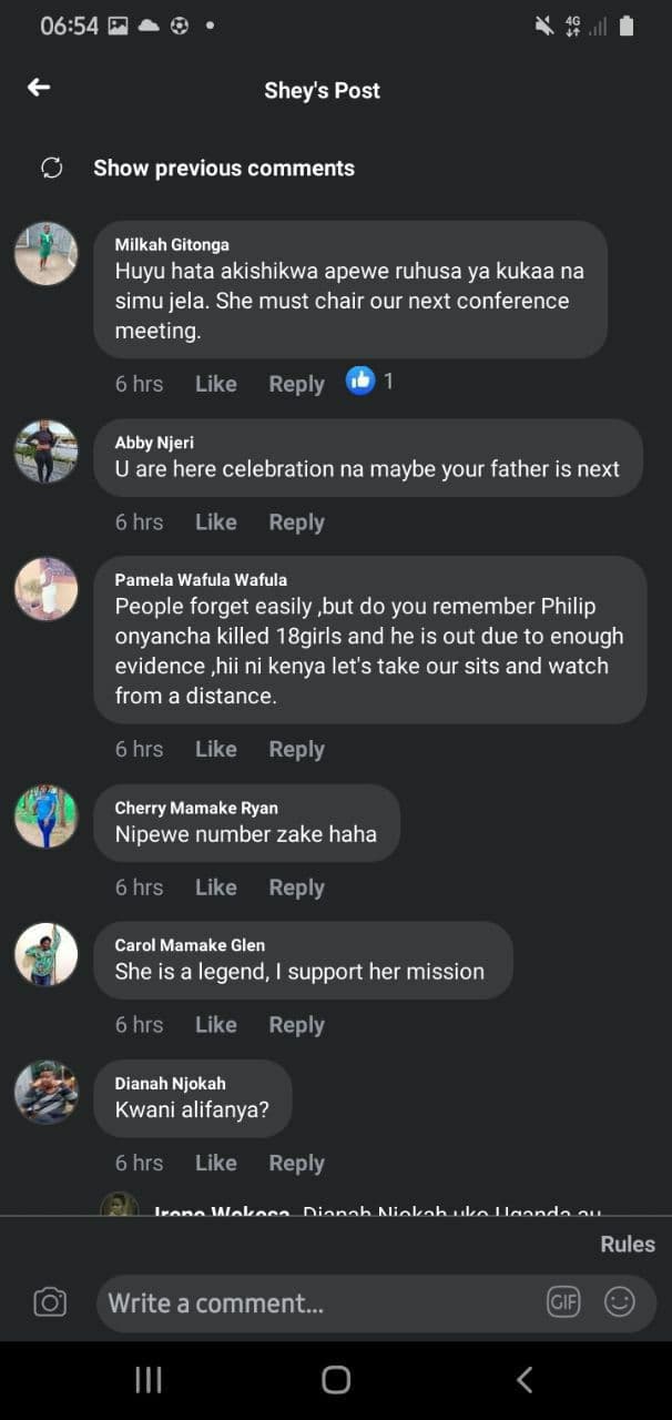 Screenshots of a section of Kenyan women praising killer cop Caroline Kangogo for her crime of gunning down two men have been doing rounds on social media.