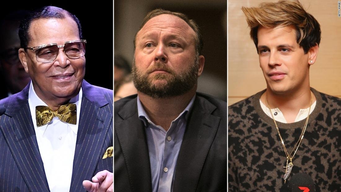 BANNED: Nation of Islam leader Louis Farrakhan, InfoWars' Alex Jones, Milo Yiannopoulos